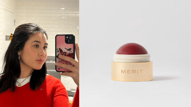 “Merit just knows how to make a good, convenient makeup product. Its Flush Balm blushes are truly elite in that they create a natural pop of color that’s not too much, and not too little—the Goldilocks of blushes if you will! In the photo above, I only applied the shade Cheeky to my right side (left in the photo), so you can see what one side looks like with blush and what one side looks like without. It’s fairly long-lasting, although since I have oily skin I do find that I need to touch up mid-day.” — Gina Vaynshteyn, Senior Commerce Director