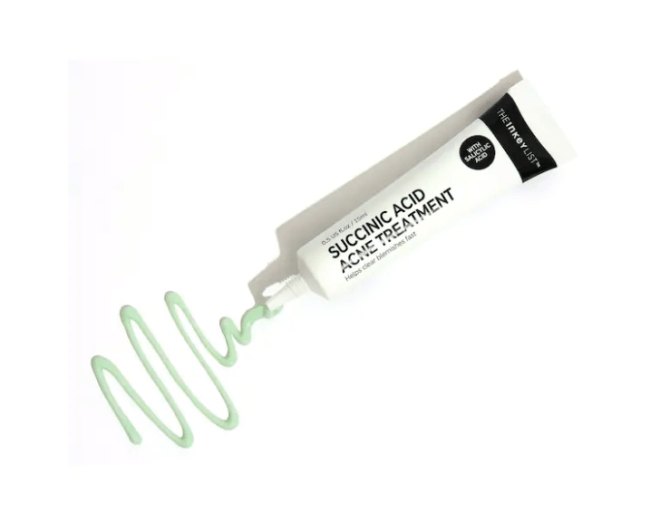 One of the first big brands to incorporate succinic acid into its products is The Inkey List. The Succinic Acid Treatment works so well, it keeps selling out. (It’s probably also thanks to the affordable price tag.) Not only did The Inkey List put 2 percent succinic acid in its spot treatment, but also 1 percent sulfur powder to help absorb oil and salicylic acid to exfoliate. The combination of these three ingredients makes this one powerhouse product.