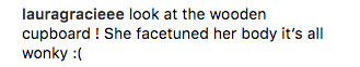 If you look closely, the edge of the dresser in the background by Hadid’s hip is curved. This led many fans to believe that the model photoshopped the picture to make her hips look bigger and her waist more slender. Afte noticing the detail, fans flooded Hadid’s Instagram with FaceTune accusations. Some slammed her for editing her body, while others expressed their disappointment in knowing that someone as beautiful as Hadid also photoshopped her pictures.