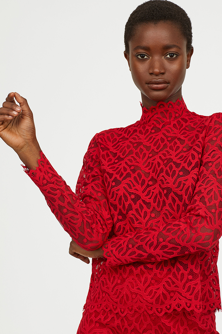 High-neck lace tops are an underrated must-have for any and all holiday parties.