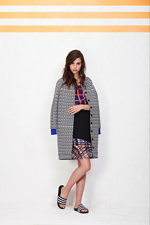 Phoebe Philo showed versions of the shoe (albeit ridiculously luxe versions) in her Resort 2014 collection for Céline. The Philo version of the shower shoe was done in tan leather and paired with a below-the-knee fox fur coat—a follow-up to her fur-lined Birkenstocks from a season earlier. Rising star designer Misha Nonoo also incorporated the shoe style into her collection, telling Fashionista: “I just thought the Adidas shower sandals really spoke to something that’s kind of l’air du temps [translation: in the spirit of the times]. I really feel that this is something that’s going to make a big comeback. They’re so comfortable, so graphic, it really works. The linear lines on the sandals worked with everything else we’re doing in the collection which is also really linear.”