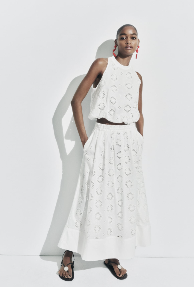 This eyelet top and skirt from Zara is a fraction of the cost of the Ralph Lauren set and has the same impact.