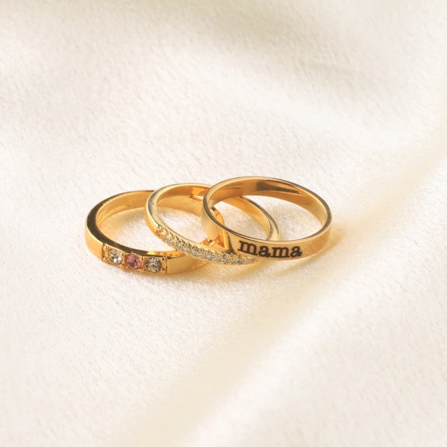 It’s not just the birthstones that are able to be personalized when buying this stack of three rings. You also have the option of choosing your own text up to 10 letters, which is perfect for adding a name, nickname, or fun saying to your present.