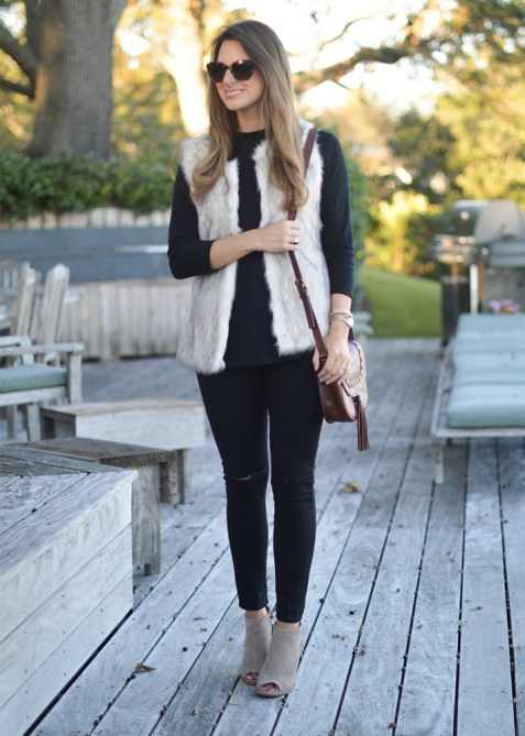 25 faux-fur vest outfits to copy now | @stylecaster