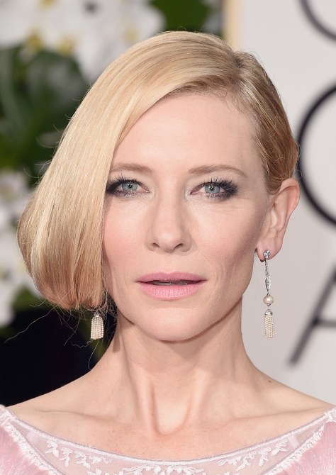 Cate Blanchett just out-Cate Blanchett’ed herself with this fearless hair and makeup look. Love the mod pale pink lipstick.