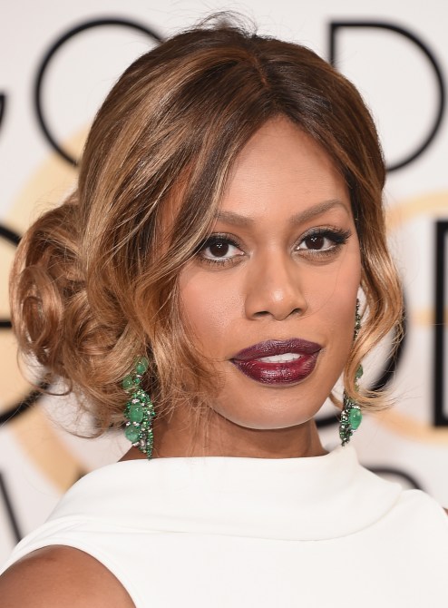 Laverne Cox is so Old Hollywood in this glamorous updo and dark wine-colored lipstick, the perfect shade for her skin tone.