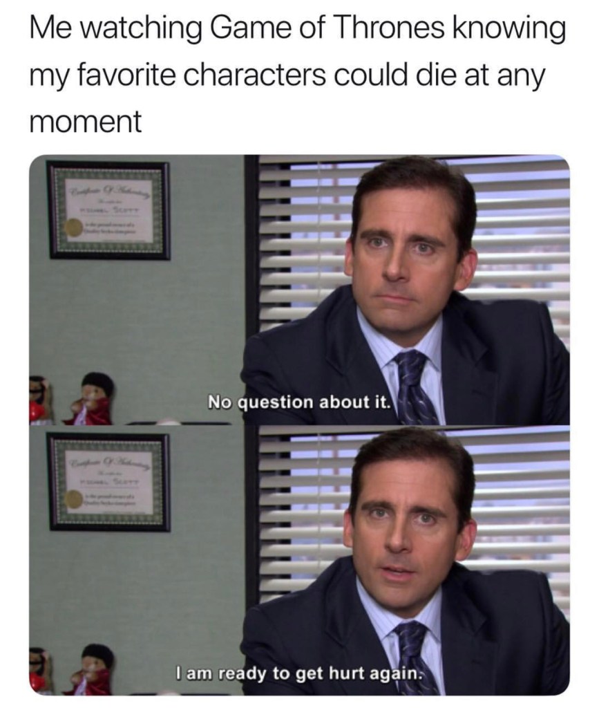Well, that was fun. But in all seriousness, we’re in for a ROUGH Sunday night this weekend. No way is GOT gonna let us get away with no deaths halfway through the season. We will likely lose many characters, and we aren’t prepared yet! Enjoy the happy-go-lucky memes while they last.