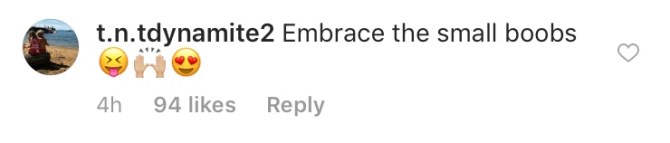 On Sunday, the “Keeping Up with the Kardashians” star—who has been shamed for everything from her toes to her tan lines—saw her Instagram flooded with mean-spirited comments criticizing how “small” her boobs looked in her bikini. Some asked unoriginal questions—such as “Where are her boobs?” and “Where did her boobs go?”—while others simply stated, “No tits.”