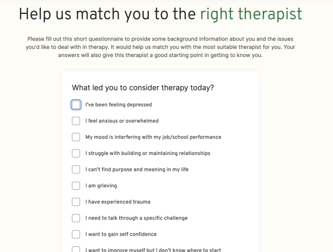 If you want to choose your own therapist, you simply have to select “Find my therapist” which is located on the homepage.