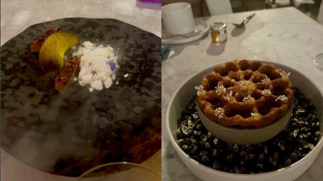 Because I can literally never say no to dessert—even when my stomach is racking up overdraft fees—we ordered two espressos and ordered two plates of something sugary to finish the evening. The Platano Macho—a plantain and yuzu dessert served with a side of cotija cheese on a large lava rock—was just as astonishing in its presentation as it was in its delicate and salty-sweet flavors. The Buñuelo—my personal favorite—was a scrumptious caramel fried-dough fritter that was beautifully decorated with little daisies. The dessert menu—which is overseen by Riccardo Menicucci, the Executive Pastry Chef—was definitely not designed as an afterthought, but a key component of the dining experience.