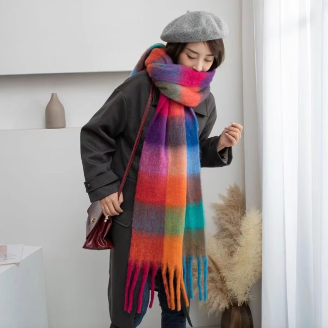 This scarf’s happy rainbow color combo will keep you warm in the winter and transition perfectly into your spring wardrobe.