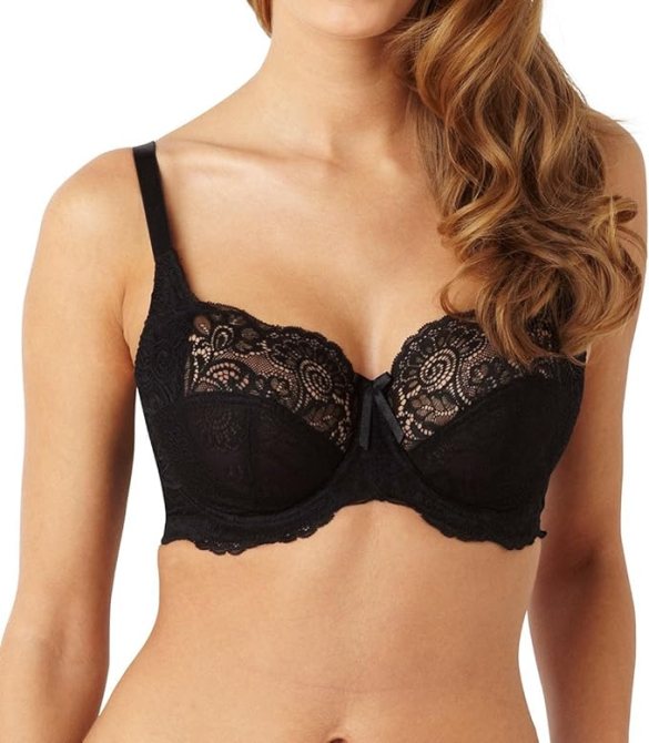 According to Caldwell, Elomi is “a curvy body’s dream bra brand.” The brand is also the go-to for full coverage styles such as the Smoothing Banded Bra , which you can find on Amazon for less than $75. “They’ve come a long way from a few basic styles to now offering some snazzy, strappy front options and seamed, sheer, plunge bras,” Caldwell adds.