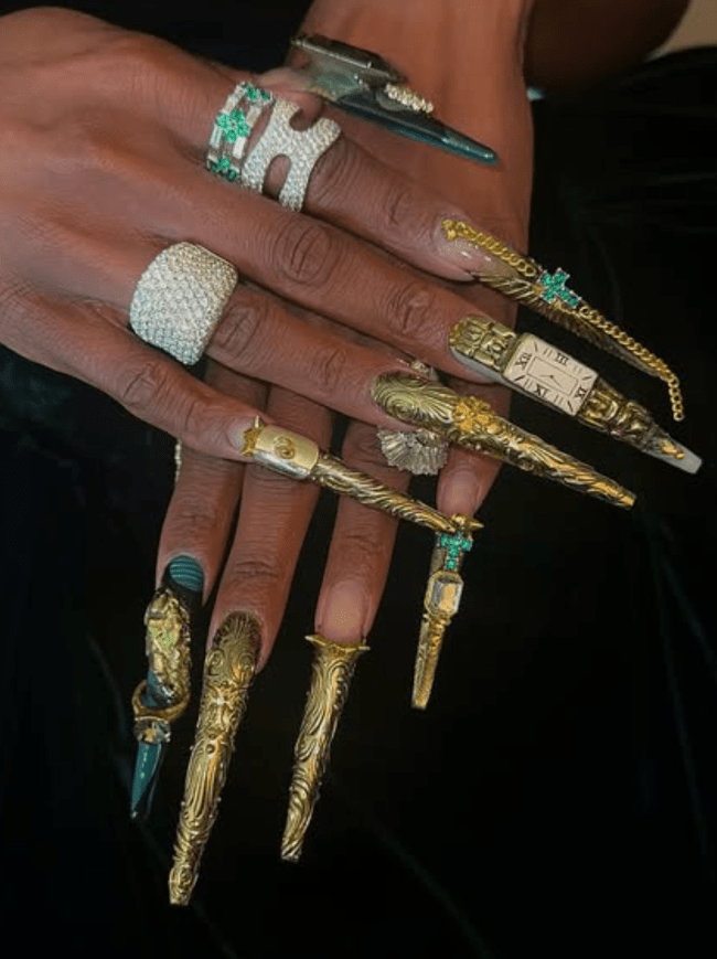 For Lisa’s first-ever Oscars appearance, she debuted a super on-trend set of airbrushed nails. Her nail artist Juan Alvear relied on contrasting colors and extra long stiletto extensions to pull the cool-girl look together. Paired with her super chic tuxedo dress, Lisa’s manicure was by far one of the most dramatic beauty moments of the night. (In the best way possible.)