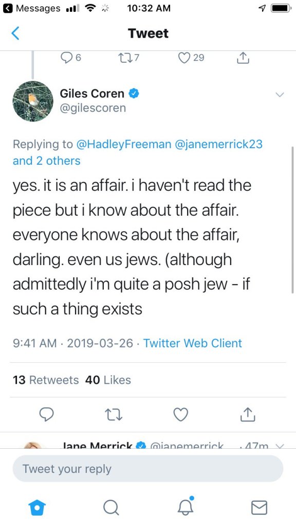 Well, it appears rumors of a romance between Prince William and Hanbury have been simmering. And yesterday Giles Coren, a well-connected member of the British media who has been reporting on the royals for years, tweeted that he knew about the affair. He rather glibly replied to a tweet about suspicions writing, “yes. it is an affair. i haven’t read thee piece but i know about the affair. everyone knows about the affair, darling. even us jews. (although admittedly i’m quite a posh jew – if such a thing exists.” (He deleted the tweet, but it was screenshotted for us all to see.)