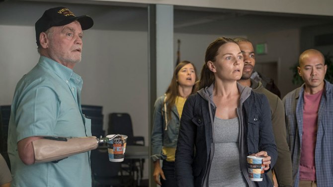Upon returning home–Cassidy is still haunted by the events of her service. As a result, she begins drinking heavily and remaining distant from her son and husband. Struggling to find work, Cassidy begins driving Uber. At rock bottom by the end of the episode, we watch as Cassidy pulls herself together and begins attending a group therapy session at Veterans Affairs.