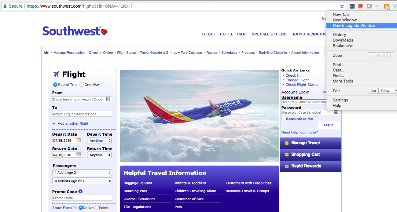 1. Use an “Incognito Window” when searching for flights and hotels. Some companies will boost the prices just because you’ve been searching the web for prices.